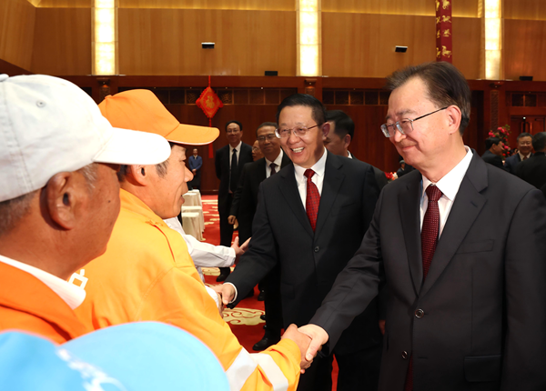 会前,王宁、王予波等与出席茶话会的基层一线代表握手交流。周灿 摄