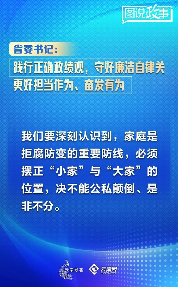 王宁强调,作为党的干部特别是领导干部,必须注重家庭、注重家教、注重家风,这是廉政建设的重要组成部分。要时刻牢记:对亲人真正的爱,不是给他们留下多少物质财富,而是要给他们留下纯正的家风,教育他们堂堂正正做人、清清白白生活,以和睦的家庭、良好的家教、端正的家风助推清廉云南建设。